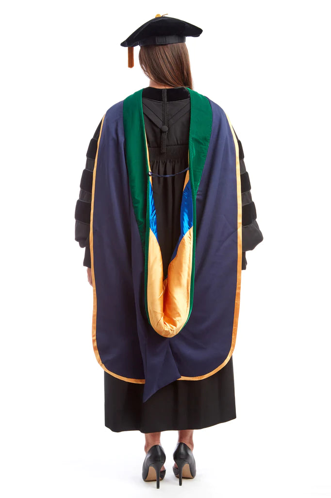 Impeccably crafted, this doctoral regalia rental set is tailored to perfection for Medical University graduates, meticulously adhering to the institution's unique specifications registered with the esteemed Intercollegiate Bureau of Academic Costume. This complete rental regalia ensemble encompasses a gown, hood, and tam, designed not only to enhance the grandeur of the commencement stage but also crafted with durability in mind, ensuring it remains a cherished keepsake throughout your academic journey.