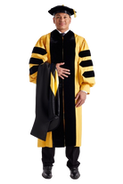 - Ribete de terciopelo azul real que denota el Ph.D.