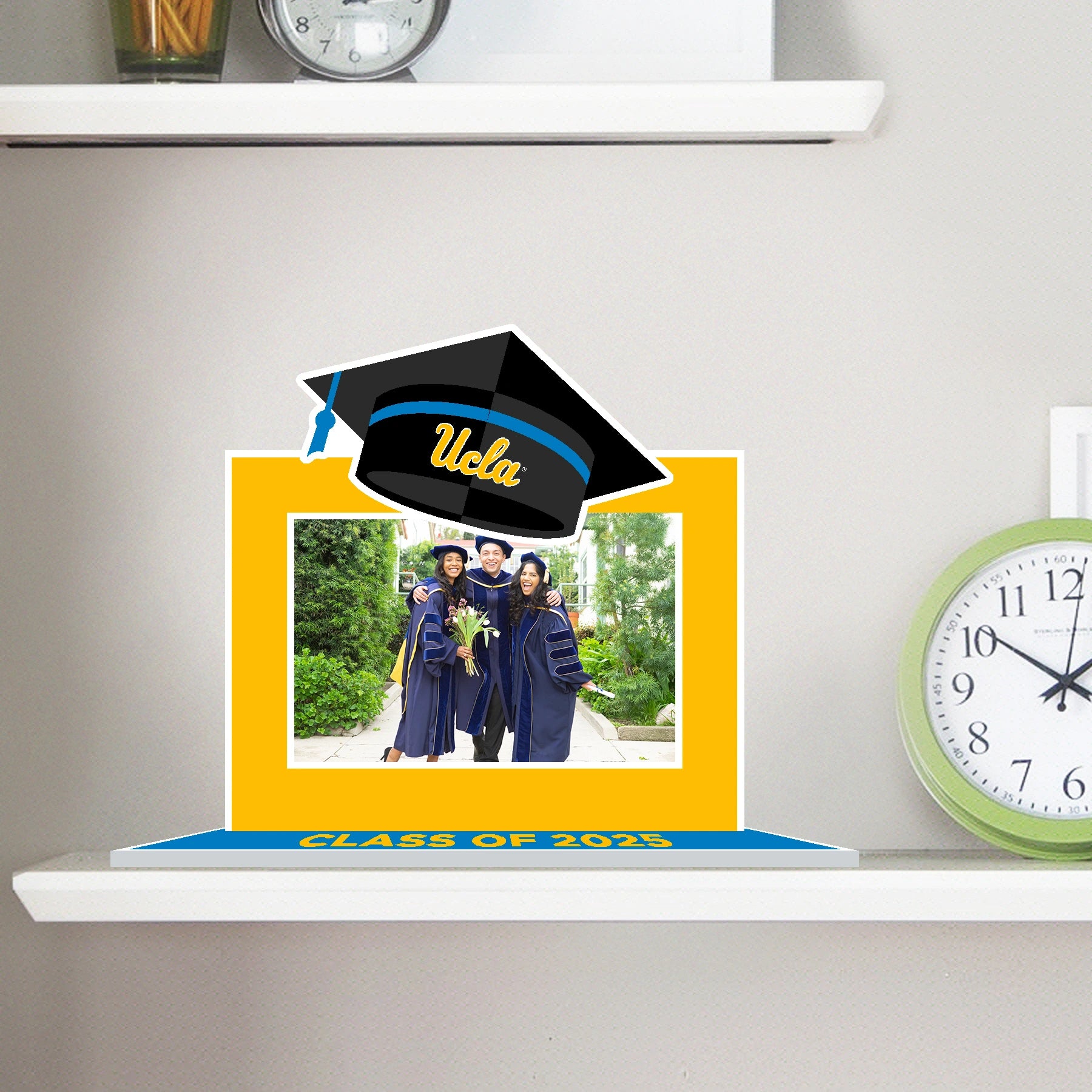 La capucha de doctorado está adornada con terciopelo azul que denota un doctorado. El interior del capó; está forrado con lujoso satén amarillo y galón azul UC, diseñado para mostrar su afiliación institucional con UCLA. Todas las capuchas miden 4 pies de largo. También están disponibles opciones adicionales de capó MD y JD.