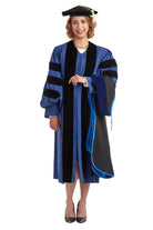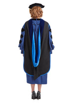 La capucha de doctorado está adornada con terciopelo azul que denota un doctorado. El interior del capó; Está forrado con lujoso satén azul , diseñado para mostrar su afiliación institucional con Yale. Todas las capuchas miden 4 pies de largo.
