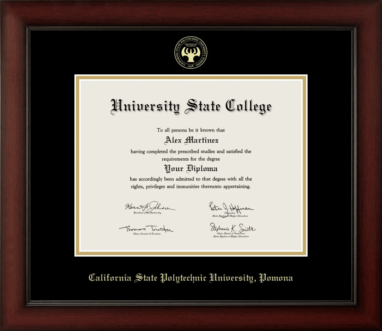 Cal State Poly Pomona Cherry Wood Diploma Frame