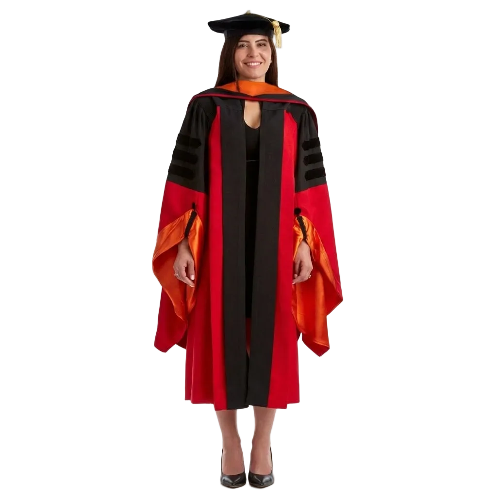 Impeccably crafted, this doctoral regalia set is tailored to perfection for Stanford University graduates, meticulously adhering to the institution's unique specifications registered with the esteemed Intercollegiate Bureau of Academic Costume. This complete regalia ensemble encompasses a gown, hood, and tam, designed not only to enhance the grandeur of the commencement stage but also crafted with durability in mind, ensuring it remains a cherished keepsake throughout your academic journey.