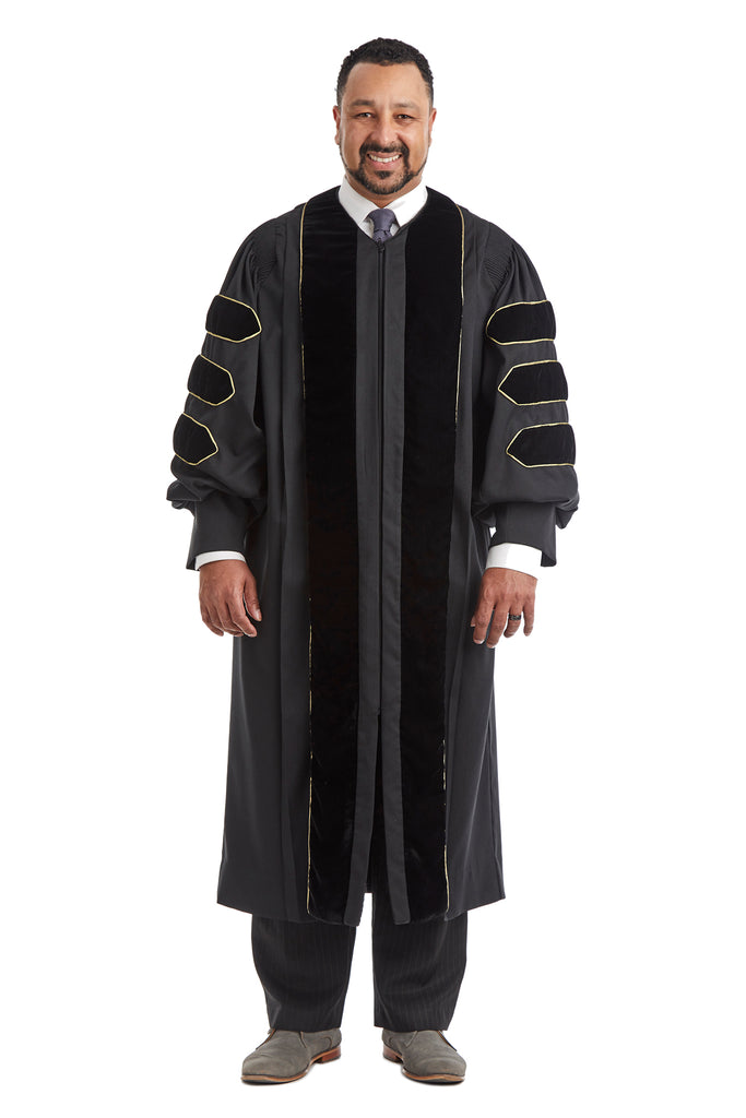 Impeccably crafted, this doctoral regalia rental set is tailored to perfection for Purdue University graduates, meticulously adhering to the institution's unique specifications registered with the esteemed Intercollegiate Bureau of Academic Costume. This complete rental regalia ensemble encompasses a gown, hood, and tam, designed not only to enhance the grandeur of the commencement stage but also crafted with durability in mind, ensuring it remains a cherished keepsake throughout your academic journey.
