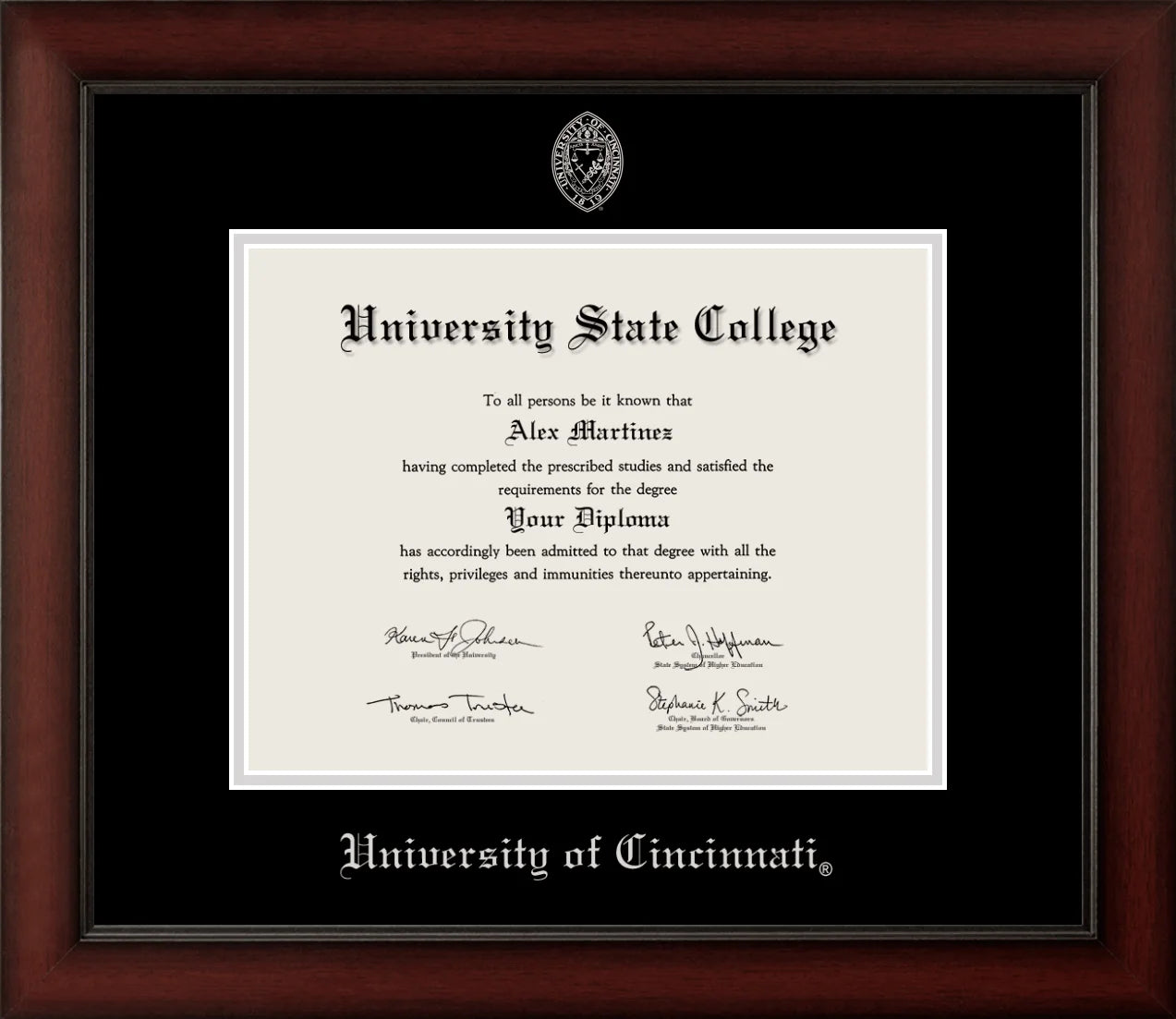 Each high-quality University of Cincinnati frame is officially licensed and proudly custom-built in the United States, ensuring it remains a cherished keepsake throughout your career.