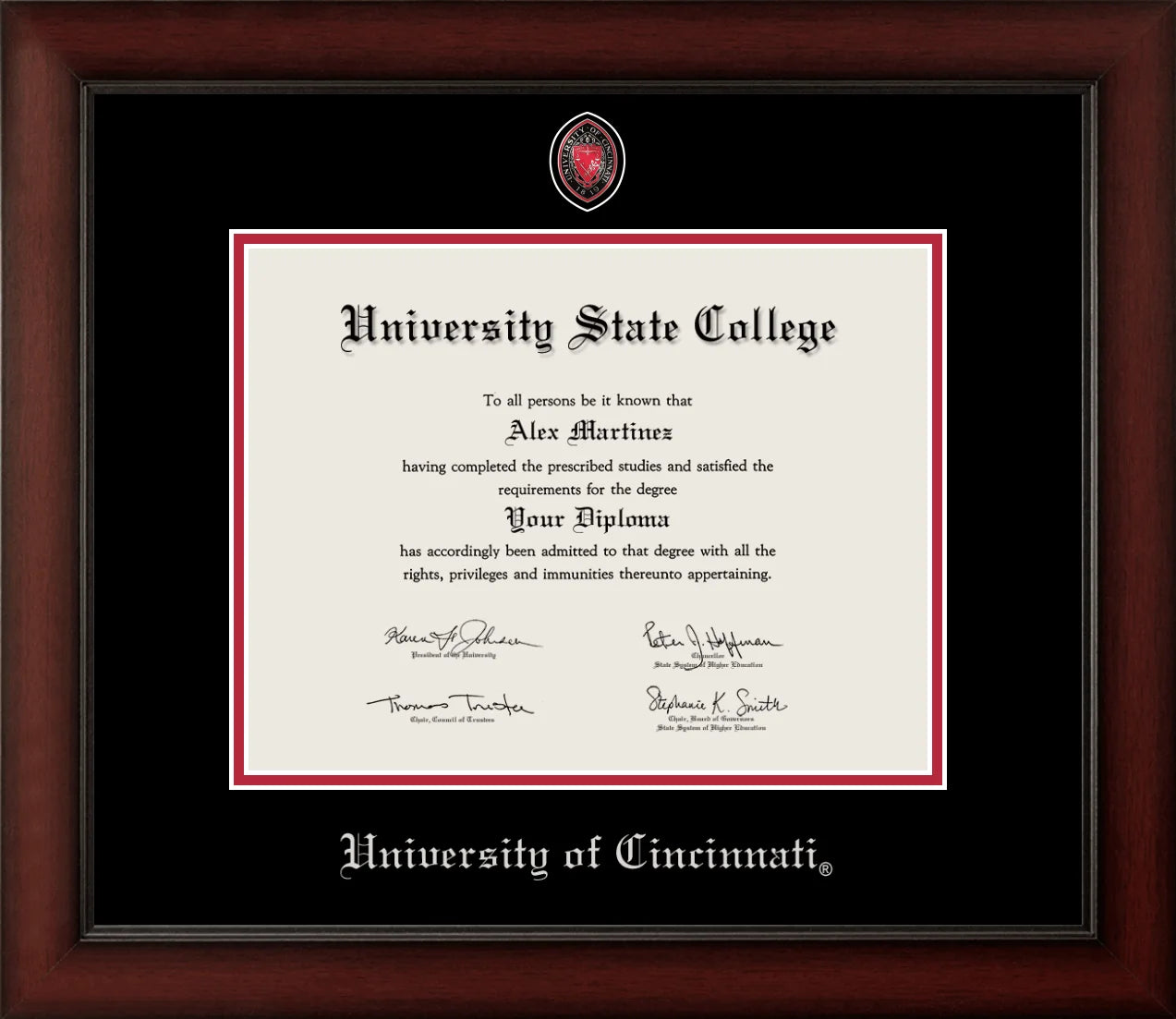 Each high-quality University of Cincinnati frame is officially licensed and proudly custom-built in the United States, ensuring it remains a cherished keepsake throughout your career.