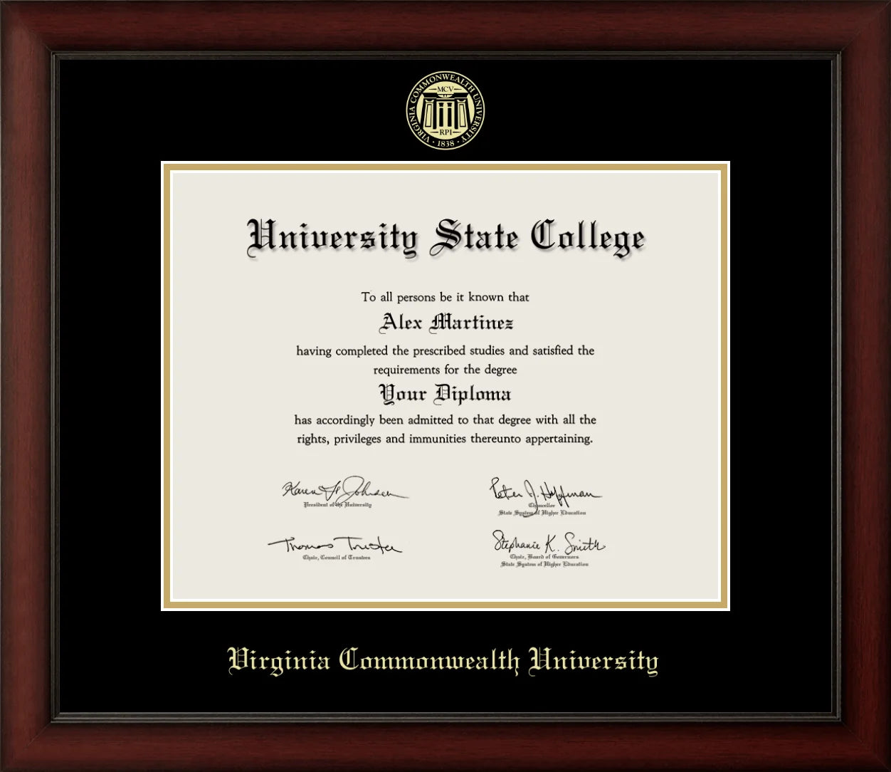Each high-quality Virginia Commonwealth University frame is officially licensed and proudly custom-built in the United States, ensuring it remains a cherished keepsake throughout your career.
